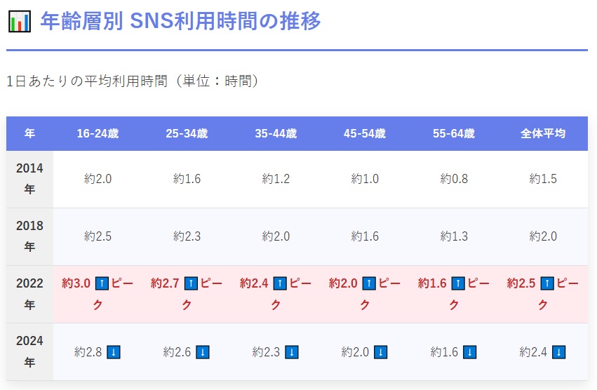 2022年をピークに、SNSの利用時間が減少に転じたのです。